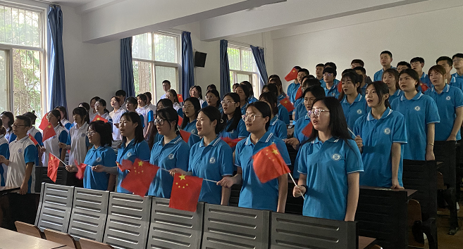 为迎接党的二十大胜利召开,庆祝中国共产党成立101周年,唱响商贸与流通学院爱党爱国主旋律,6月30日下午,商贸学院学生第一党支部在崇文北楼阶梯一教室开展“颂歌献给党,喜迎二十大”主题党日,38名新发展党员、62期积极分子代表参加了活动,活动由学生第一支部书记万永亮主持。