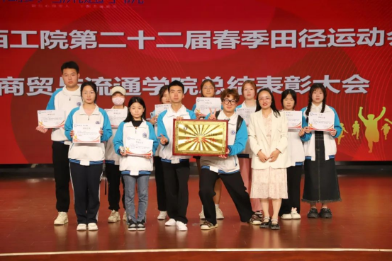 实训中心主任杨涛宣读了《商贸与流通学院团总支关于表彰第二十二届春季田径运动会先进个人、先进集体的决定》,学院领导和老师们依次为本次运动会涌现出的先进个人和先进班集体颁发了荣誉证书。随后七位学生代表依次上台发言。同学们表示,运动会期间虽然贡献了精力与汗水,但也学会了友爱、团结和理解,我们将继续前行,发扬商贸人的风采,一起做红心商贸人,干阳光流通事。