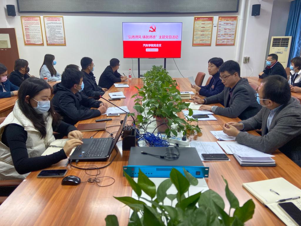 为进一步规范教师履职履责行为,落实立德树人根本任务,弘扬新时代高校教师道德风尚。10月25日下午,汽车工程学院党总支于A605会议室开展了“弘扬师风、铸就师德”主题党日活动,会议由党总支书记高亚宁主持,全体老师参加。