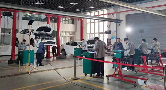 本次职业技能等级实操考核认定内容分为发动机检修、底盘检修和汽车电器检修等三个模块。考生按照规定的考核顺序依次完成全部考核任务。考评期间,考生们沉着应考,展现出了扎实的理论基础和熟练的实操能力;考评员们公正评判,巡考及考务人员们忠于职守。