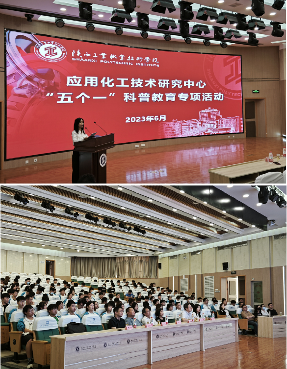6月9日下午,化纺服学院在学术会堂成功召开应用化工技术研究中心化石能源清洁转化及环境治理“五个一”科普教育专项活动。延长石油集团高级工程师杨帆、西安理工大学郑兴教授、张耀中博士、西北大学孙鸣教授、化纺服学院党总支书记贾格维、院长王化冰、副院长刘迪、教研室主任、骨干教师以及各班学生代表参加此次活动,由副院长刘迪主持。