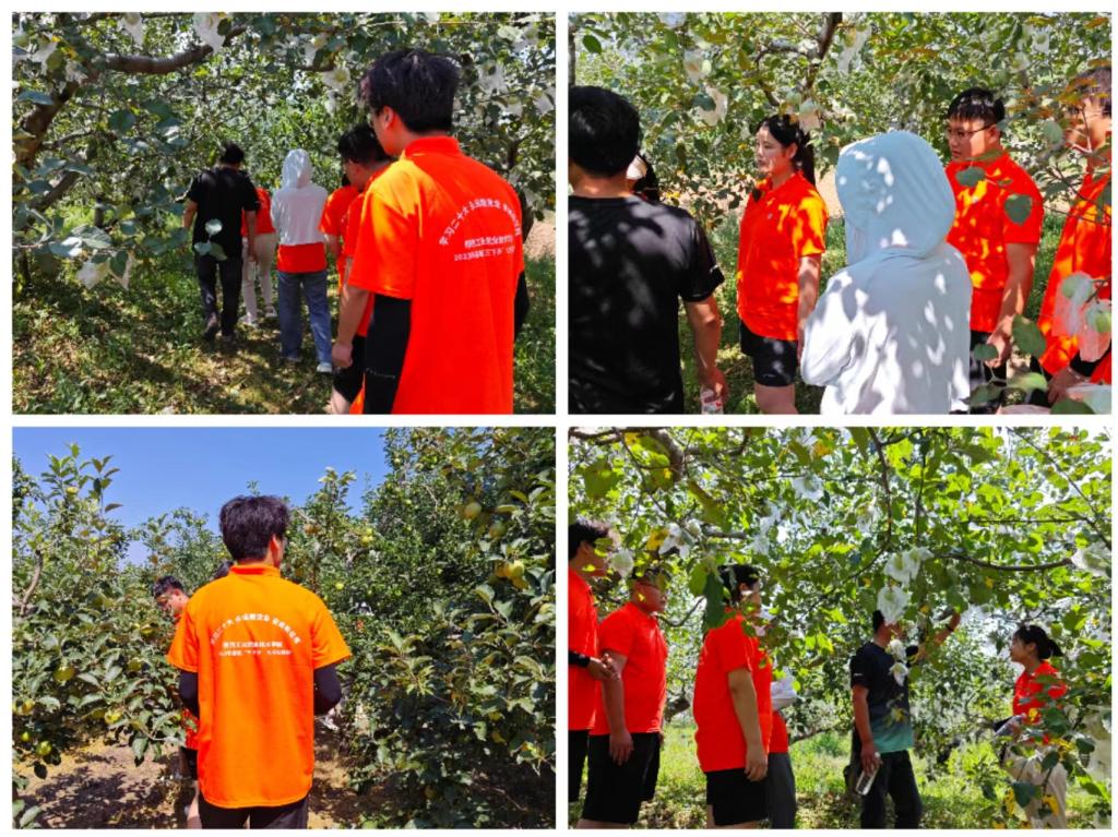 下午,实践队成员在村委会负责人的带领下,参观了村上的苹果园。负责人向实践团员们讲述了在乡村振兴战略的指引下,当地如何通过精准扶贫产业帮扶来发展特色产业,以及在探索产业发展模式中的心路历程。