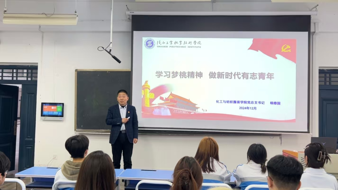 为学习和发扬梦桃精神,激励广大青年做新时代有志青年,12月23日下午,化工与纺织服装学院党总支书记杨修国在崇文东楼101教室以“学习梦桃精神,做新时代有志青年”为题开展讲党课活动,全体发展对象参加了会议。