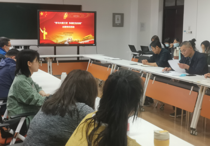 5月9日下午,土木学院党总支在精益楼4001开展了“学习大国工匠 争做红色先锋”主题党日活动,全体教职工参加会议,党总支书记张科海主持会议。