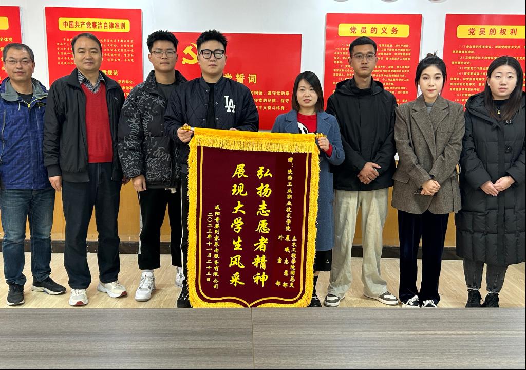 “你们的暖心行动,让我们养老院的老人们感受到了来自青年力量的关心与爱护”。11月22日上午,西北国棉二厂社区“咸阳青葵到家养老服务有限公司”负责人潘女士及公司代表来到星空web版登录入口,为土木工程学院教师和学生志愿者们送来致谢的锦旗,上面印有“弘扬志愿者精神,展现大学生风采”,表达了对我校青年大学生志愿服务精神的一份诚挚谢意!交流会议于格物楼219举行,参加会议的有“青葵到家养老服务有限公司”负责人,土木工程学院党总支书记卢文澈、学工办主任马俊、学工办辅导员以及学生代表等。