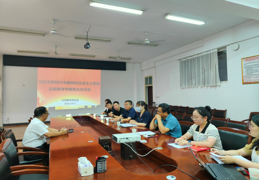 9月4日下午,公共教学党总支在崇文主楼501会议室召开了学习贯彻习近平新时代中国特色社会主义思想主题教育专题民主生活会。学校党委副书记、纪委书记康强同志到会督导,公共教学党总支班子成员、党支部书记共8人参会。会议由党总支副书记赵娇主持。