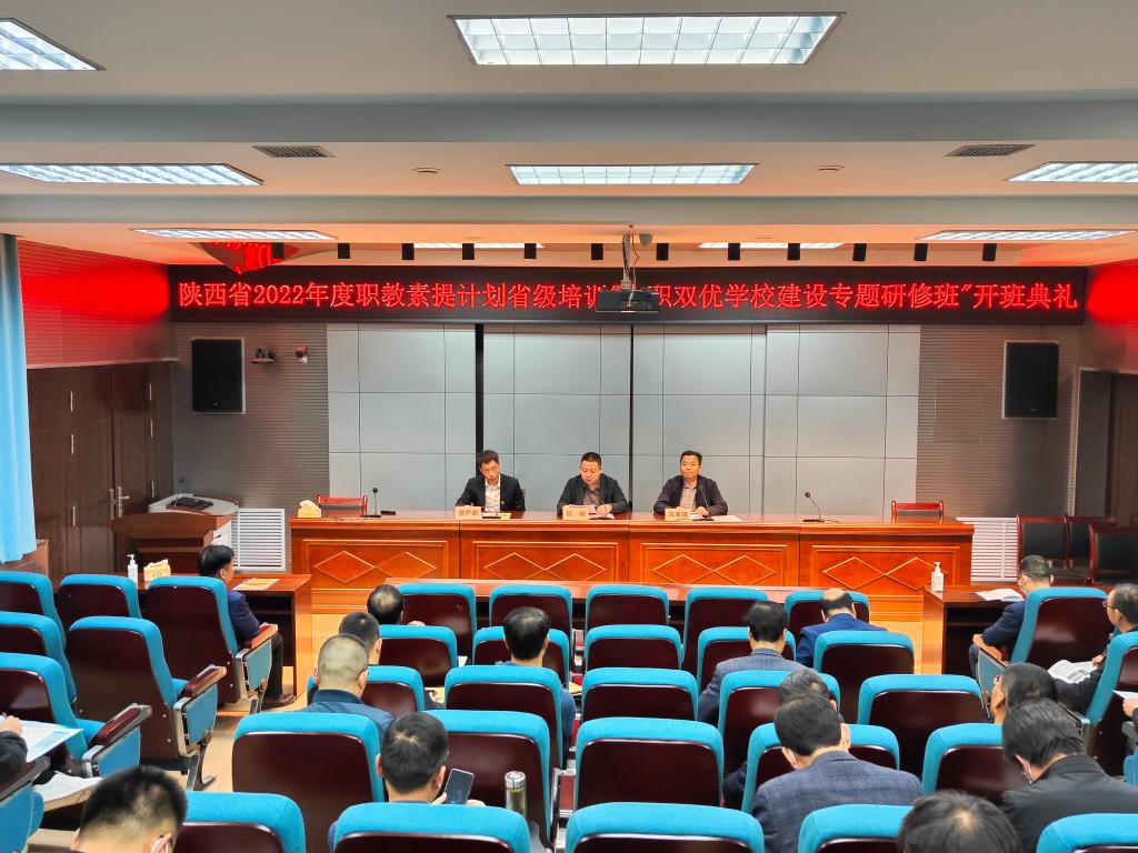 4月14日至23日,为期10天的“双优学校建设专题研修班”,于4月14日上午在我校渭城校区笃学楼B报告厅开班。学校副校长段峻、继续教育与培训学院院长乌军锋、副院长贾严鹏和培训班管理人员以及全体学员参加了开班典礼。乌军锋主持了开班仪式。本次培训班是2022年度陕西职业院校教师素质提升计划省级培训项目,来自全省30余所高职学校的35名的中职学校校级领导参与研修。