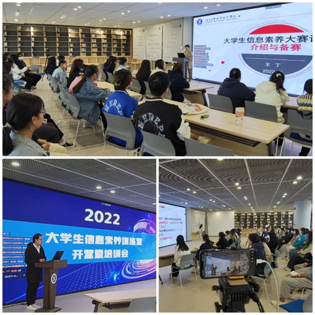 10月17日下午,“2022年大学生信息素养竞赛训练营开营”在经开校区图书馆正式拉开帷幕。本次启动会采取“线下会场+线上会议+线上直播”的模式共同进行,部分教师代表以及140余名学生现场参加了启动仪式,950余名学生通过腾讯会议和公众号直播参加了首场培训。