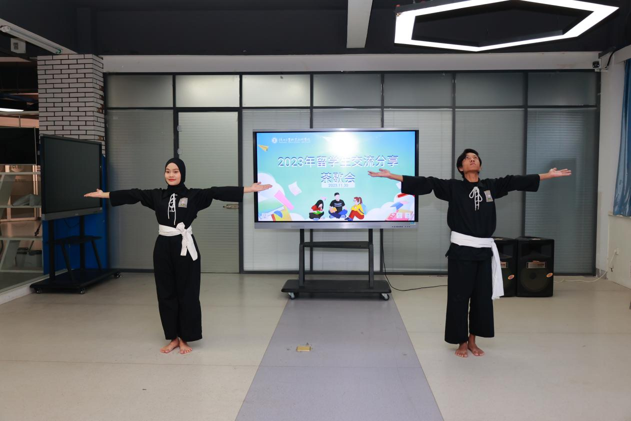 第二环节“才艺展示”由印尼留学生王兰主持,留学生们精心准备了4个节目,武术、舞蹈、印尼传统歌曲《Pusaka and Tanah Airku》、集体合唱Ed Sheeran《Perfect》,大家展示青春最美的样子。