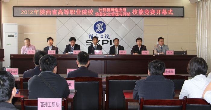 4月26日上午,2012年陕西省高等职业院校计算机网络应用、信息安全管理与评估技能竞赛开幕式在我院十楼会议室举行,专家组组长、咸阳师范学院信息工程学院院长解争龙,学院院长崔岩、副院长王津、教务处长杨卫军、信息...