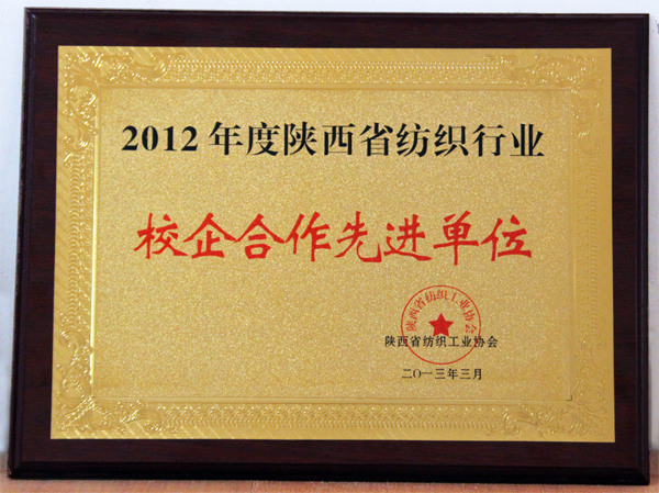 3月12日,陕西省纺织工业协会召开2013年工作座谈会,对2012年度经济效益好、科技创新强、产学研效果显著的先进单位进行了表彰,我院荣获陕西省纺织行业校企合作先进单位。