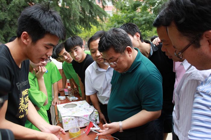 6月5日下午,由教务处主办、电气学院承办的陕西工院第十一届“创意杯”电子作品展在格物楼前举行,学院党委书记邓志辉,副院长赵嘉骏,党政办、教务处、电气学院相关部门负责人参观了展览,并与学生进行亲切交流。