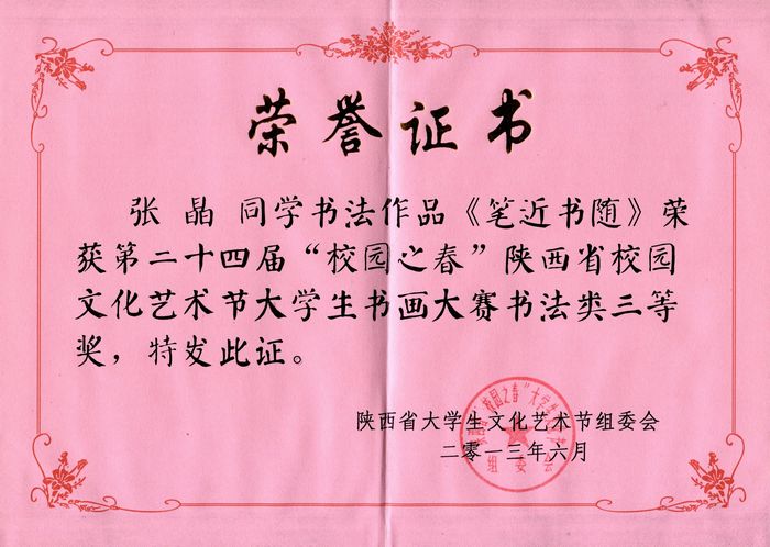 近日,由中共陕西省委教育工委、共青团陕西省委员会、陕西省学生联合会主办的第24届“校园之春” 陕西省大学生文化艺术节书画大赛在咸阳师范学院举行,包括我院在内的全省27所高校选派作品参加。