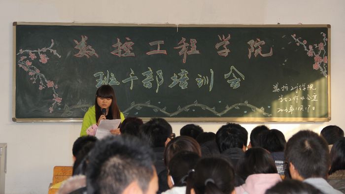 为进一步加强班级建设,促进优良学风的形成,近日,数控学院于在笃学B二楼的阶梯教室召开了班干部培训大会,大一、大二各班班长、团支书、学习委员、生活委员参加了培训。