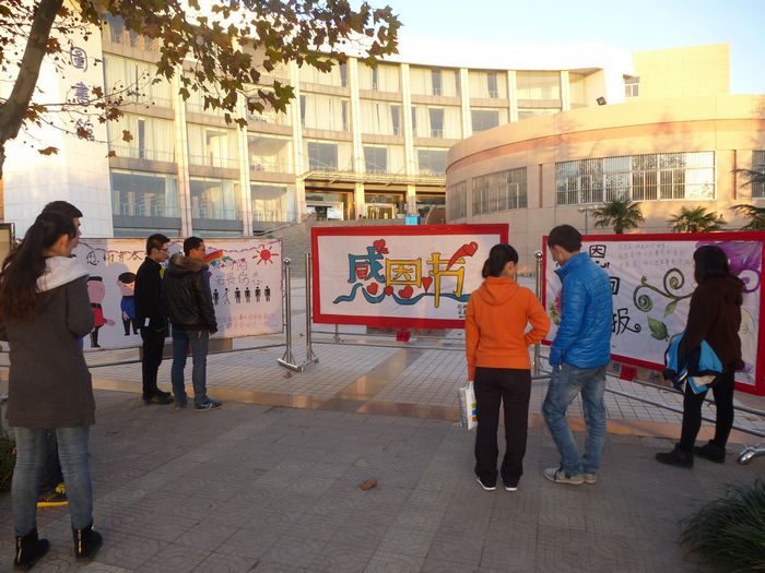 11月28日下午,由团委主办、社团联合会承办的,以“弘扬工院文化,心系感恩情怀”为主题的陕西工院第一届宣传板创意设计大赛在成才大道举行。