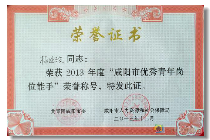 近日,共青团咸阳市委、咸阳市人力资源和社会保障局联合发文(团咸联发[2013]50号),对“2013年度咸阳市杰出青年岗位能手和优秀青年岗位能手”进行表彰。
